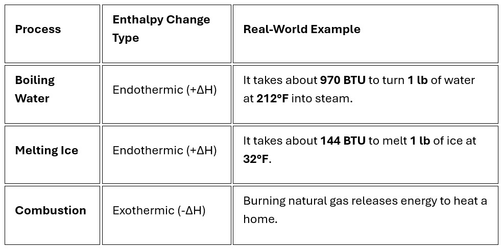 - Endothermic Reaction (+ΔH): The system absorbs heat from the surroundings (e.g., melting ice or boiling water)