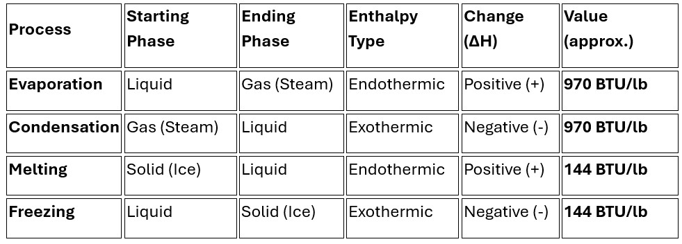 - Energy Released/Absorbed = Mass (lb) × Latent Heat (BTU/lb)